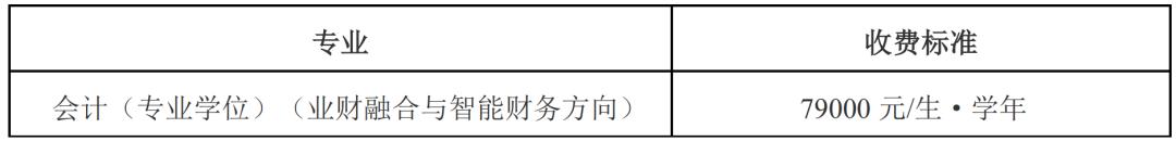 表一:非全日制会计硕士研究生学费标准